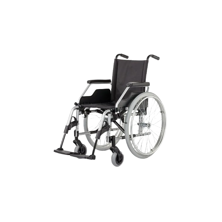 This wheelchair is designed for safe and comfortable patient transport within healthcare facilities. It combines durability with ease of use.